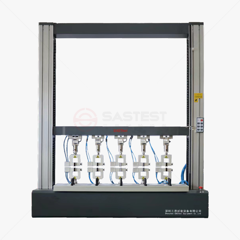 微机控制多工位电子万能拉伸试验机用于塑料、橡胶、皮革等各种非金属材料及小金属材料等产品试样的拉伸试验,配有5个气动夹具,可进行单独控制,也可同时进行五条试样的拉伸试样,大大提高试验效率,采用进口电机及伺服控制系统和进口传感器,并配备全闭环测量控制系统,可实现力控、变形控、位移控等多种控制方式自动切换;自有国内试验机行业功能软件系统,自动实时生成图线和各种表格,自动计算延伸率、抗拉强度、抗压强度、屈服强度、弹性模量等各种参数并有英文版软件,可以执行GB、ISO、ASTM、DIN、JIS、CE等各种检测标准。